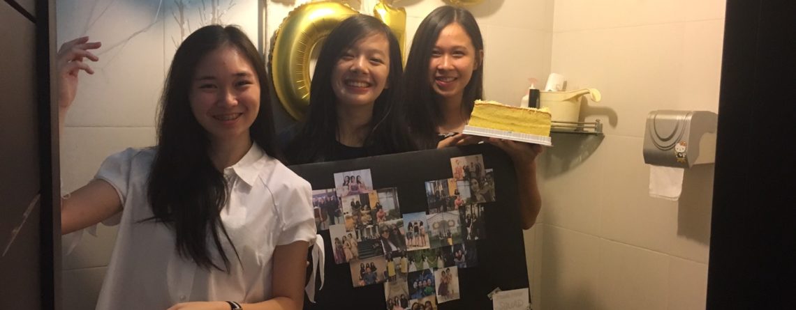 2 of my besties, icha and joce was standing there, with ballons and decoration , IN A SUPER SMALL BATHROOM. And it was super hot there!